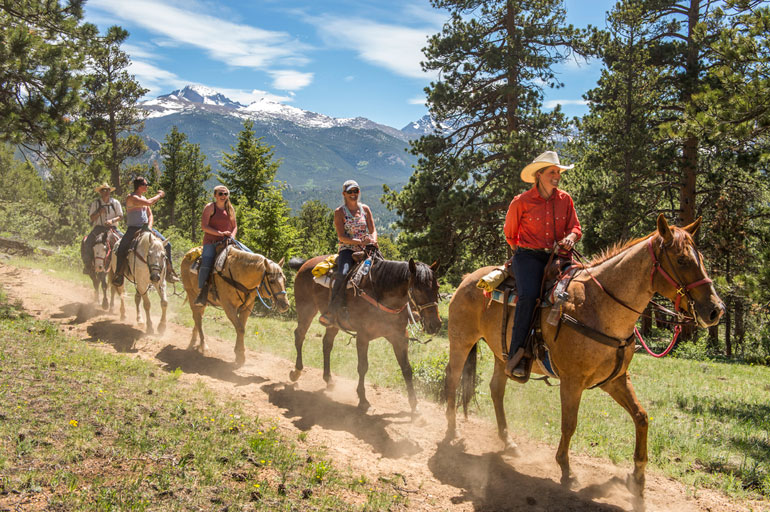 Rides into Rocky Mountain National Park to either the popular Cub Lake or extend on to the high elevation Fern Lake. The ride follows along the lateral Moraine towards Cub Lake. Riding past Cub Lake and down to the Pool, past Fern Falls and up to Fern Lake. Rider's pack a lunch and get to stop at the lake. After lunch the ride descends back down to the Pool and then loops back through Moraine park. Rider's mush be in good physical shape and have some riding experience. Jackets are recommended.