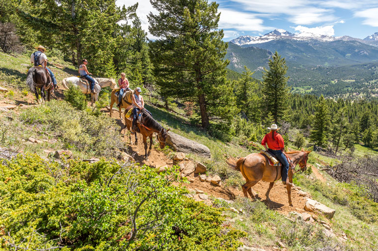 Ride into Rocky Mountain National Park starting at the East Portal. The trail will make a loop offering great views of the continental divide and following a stream for a while. Great chances for seeing moose. There is a rest stop along the way, so pack a snack. Riders must be in good physical shape and have some riding experience. Jackets are recommended.
